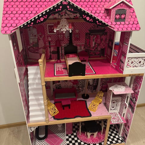 Itse tehty nukketalo, toiminut Schleicheillä tallina ja kotina. Barbie näyttämässä kokoa. Alhaalla ovi liikkuva. Leikeissä tullutta jälkeä mutta varmasti menee edelleen käytössä☺️ nouto Salokylältä, kulkeutuu töiden mukana Liperi/Ylämylly.