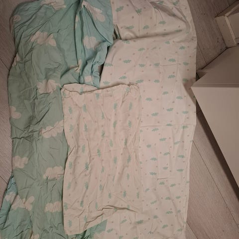 Myydään settinä peitto, tyyny ja vuodevaatteet, joihin kuuluu pussilakana ja tyynyliina.