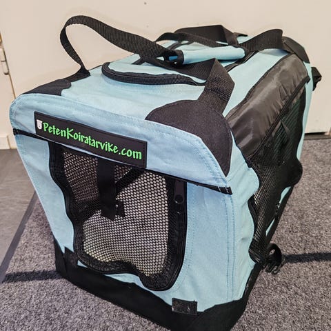 Peten Koiratarvikkeen kevythäkki kissalle tai pienelle koiralle. Väri vaaleanpunainen. Kassi on valmistettu kestävästä materiaalista ja siinä on verkkopaneelit. Pentu hieman järsinyt päädyn vetoketjua, mutta se toimii yhä kuitenkin.