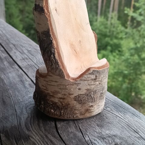 puhelinteline, puinen puhelinteline, kännykkäteline, puhelinteline kaiuttimella, passiivinen kaiutin, äänivahvistin, puinen kaiutin, luonnonpuu, retro, työpöytä, toimisto, iPhone teline, Samsung teline, älypuhelin, handsfree, videopuhelu, musiikki, sisustus, lahja, kaiutin, ekologinen, eko