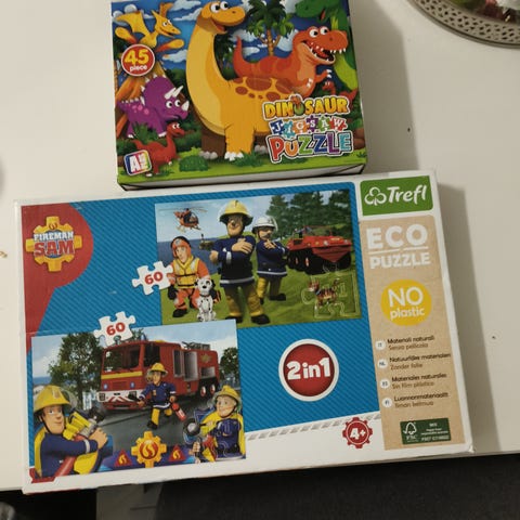 Myydään kaksi palapeliä yhdessä. Molemmissa 16 palaa. Muuten hyvässä kunnossa, mutta toisen palapelin yhdessä palassa pintaa irti. Näkyy kuvassa.