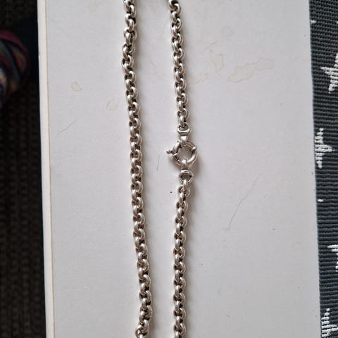 Kuvien mukainen ja käyttämättä jäänyt hopeinen papu kaulaketju. Asian mukaiset leimat löytyy korusta. Pituus 45 cm, 6 mm. Paino kotivaa'alla mitattuna 37 grammaa.
