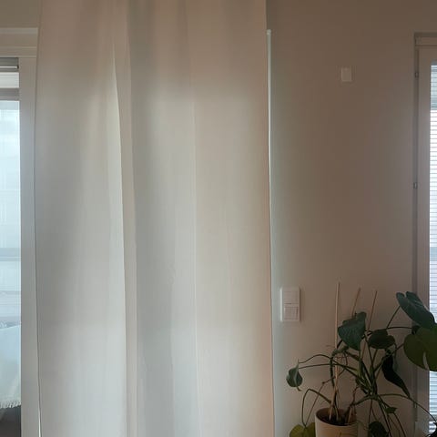 Uudet käyttämättömät House-merkkiset beiget verhot 2 kpl. Yhteensä 20 euroa.