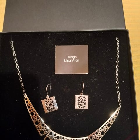 Tässä Ne on Ehkä. Taiteilija LIISA VITALI Hienoimmista sarjoista ,koruseyeistä mitä hän teki.Parasta täyttä 925HOPEAA!Toinen pitempi riipus peräti 80cm ja toinen 40cm.MOLEMAT painavia täyttä Hopeaa,myyn käyttöön koska näitä ei voi enää ostaa.Töydin uutta vastaavat ja omassa Design Liisa Vitali rasiassaan!Äärimmäisen haluttu.Molemmat yht vain 119€ tai 79€/kpl