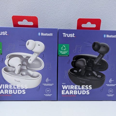 Myyntiin uudet käyttämättömät ja sinetöidyssä tuotepakkauksessa olevat Trust Yavi TWS Bluetooth -nappikuulokkeet.