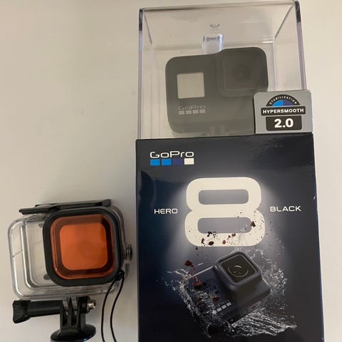 GoPro Hero 10 Black actionkamera, joka sisältää kameran, kaksi enduro-akkua, yhden perus GoPro-akun, vedenpitävän kotelon ja lisävarusteita kuten kelluvankahvan, tripodin ja kiinnikkeen. Kamera sopii monipuoliseen ulkokäyttöön ja urheiluun. Erittäin vähäisessä käytössä ollut ja toimii moitteettomasti.