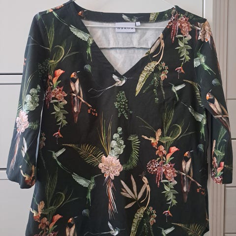 Kotimaisen laatumerkin puuvillainen pusero. Kaunis kuvio ja vaalean vihreä pohjaväri. Moitteeton kunto.