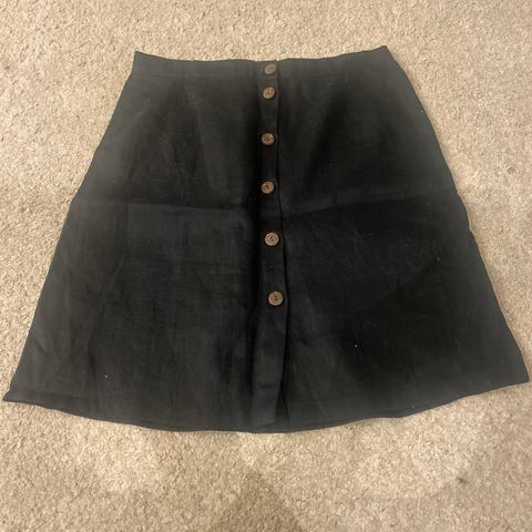 Käyttämätön Linengirls pellavahame. Tarkempia mittoja näkyy kuvassa. Vyötärö venyy, kuminauhavyötärö. Sivuilla taskut.