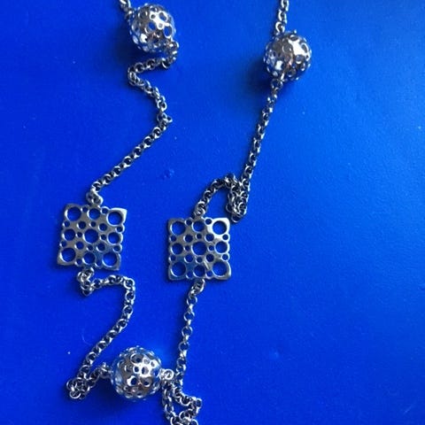 Yksi hienoimmista ja erikoisimmista teoksista .Liisa Vitali on yhdistänyt parhaasta 925 Hopeasta NK.Leppäkerttu korun ja Pitsikäädyn samaan koruun.On todella harvinainen ja itse Taiteilija menehtyi 1987,Ja kaikki tietää Että hinnat nousee koko ajan ja tämä on Täyttä HOPEAA 925!Tässä koru joka ollut laatikossa koko ajan eli ei ole mitään tumnentumia tai kaiverruksia ,ainoastaan 925 hopean merkinnät.Nyt lähtee JOLLEKKIN tosi edullisesti vain 99e.Pituus 74cm.TODELLINEN HELMI KORUN KERÄILIJÄLLE Vain 99€!!!!!