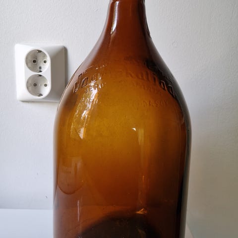 Laatikon korkeus 30cm, leveys 21cm ja pullon korkeus 40cm.