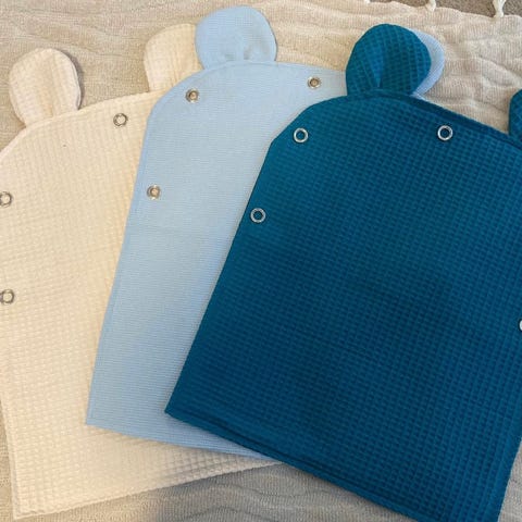 Trikoosta ommeltu kivalla kuviolla vauvan vaunuverhoja.