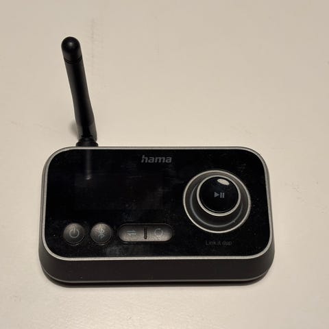 Kerran käytetty Haman bluetooth-lähetin, jota voi käyttää esimerkiksi lentokoneen viihdejärjestelmässä tai missä vaa jossa ei ole bluetoothia, mutta on 3,5mm kuulokeliitäntä.