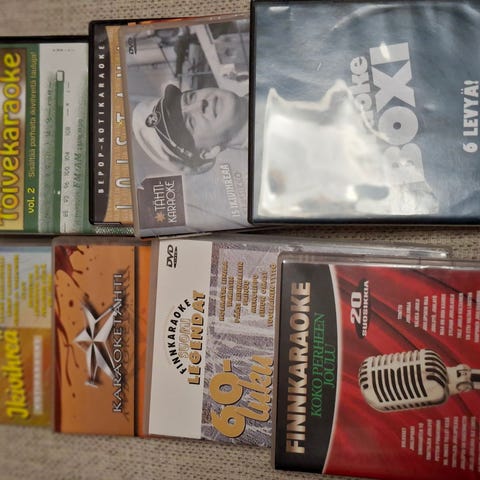 Myydään 12 karaokelevyä ja 3 mikrofonia. Kunto ok!