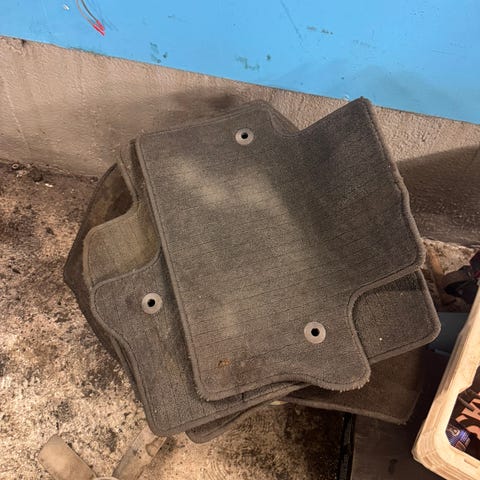 Lattiamatto sarja Volvo V70 mk2. Ehjät mutta likaiset matot. Pesu jää ostajalle