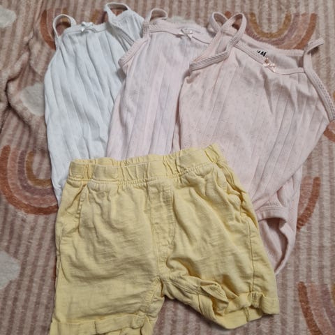 Reserved merkkiset hihattomat bodyt ja shortsit koko 74cm ja bebe shortsit koko 80cm.