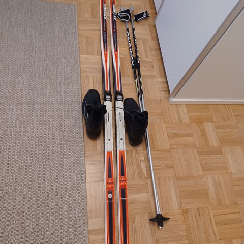Sukset pienelle hiihtäjän alulle Fischer pitopohjalla, sauvat ja pienet monot koko 26, 27 tai 28
