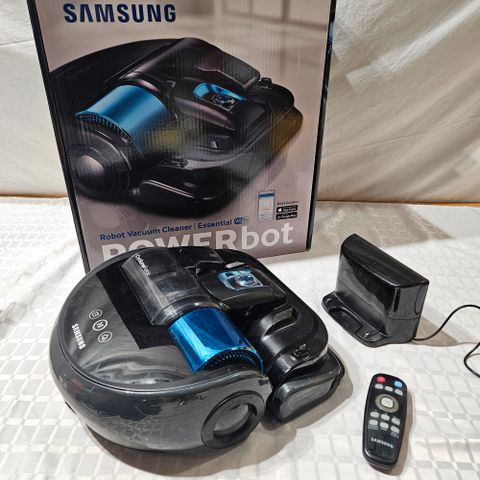 Täysin toimiva robottipölynimuri. Ottaa kiinni esim jos on pitkiä hapuja räsymaton päissä, mutta muuten tekee tehtävänsä.