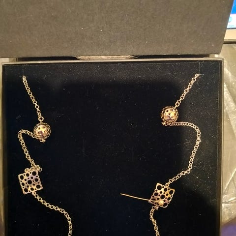 Tässä Täysin käyttämätön,tummumaton,kiiltävä Liisa Vitalin upea HOPEA KORUSETTI 925 Hopeaa koko sarja Ehkä se Halutuin NK "Pitsi sarja" , erittäin arvostettu.Tsiteilijahan menehtyi 1987 ja Kysyntä kasvaa koko ajan ylöspäin.Tästö ikinä ei ole käytössä ollut setti mukana Lehtinen ja oma rasia.Kaulakorun pituus on 45cm ja korvakorut on 1,5cm ja kokonais painoa on 10,4grammaa.Tiedän Eurooppaan näitä halutaan useilla satasilla,mutta Suomalaisena arvostan taiteilijaa ja sitä että nämä jäisi jonkun kokoelmiin tai käyttö koruiksi Suomeen.Siksi myyn nämä uudet käyttämättömät umpi Hopeaa olevat leimoilla ,vain 145e Kaikki.Nopein nappaa