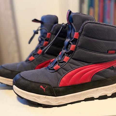 Myydään Reima Hankinen talvikengät. Pohjissa kantapäässä pientä kulumaa (kuva), tpisen kengän kangasosassa myös pientä korjausta (kuva). Todella lämpimät ja hyvät kengät muuten