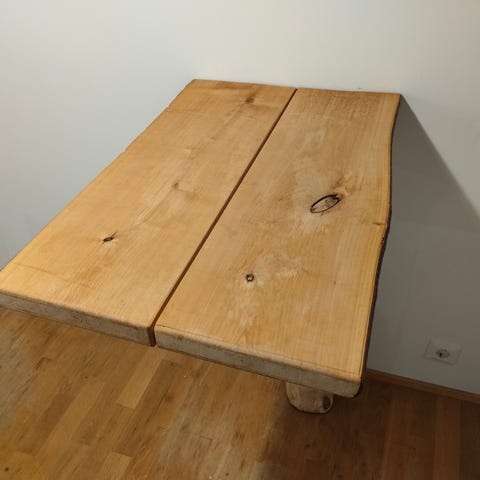 Neliönmuotoinen, laadukas kahvilapöytä, jossa on laminoitu puun värinen paksu taso ja metallinen jalka. Jalka on varustettu alta säätöruuveilla, mikä mahdollistaa suoristamisen tarpeen mukaan. Pöydän korkeus on 110 cm.Hieman pintalikaa alkuun pyyhittäväksi, vähäistä käytön jälkeä.Ota yhteyttä asiakaspalveluumme mikäli olet kiinnostunut isommasta määrästä.
