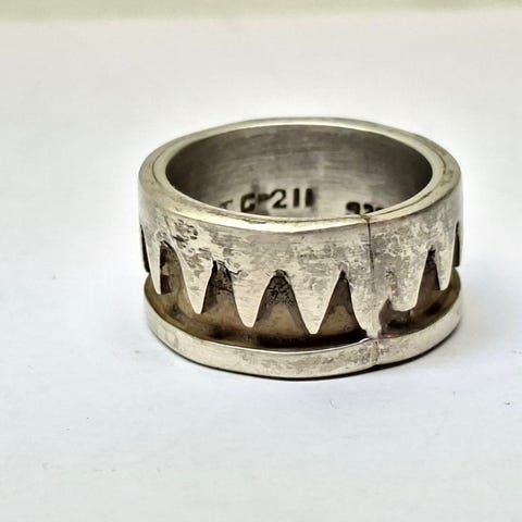 Ihan todella kaunis hopeinen ruotsalaisvalmisteinen sormus, valitettavasti yksi kivi tippunut. Vasta kuvatessa huomaisin, eli ei sinänsä erotu. Ei kustanna kohtuuttomia käyttää tämä kultasepällä, jos haluaa kiven tyhjään kohtaan istuttaa,