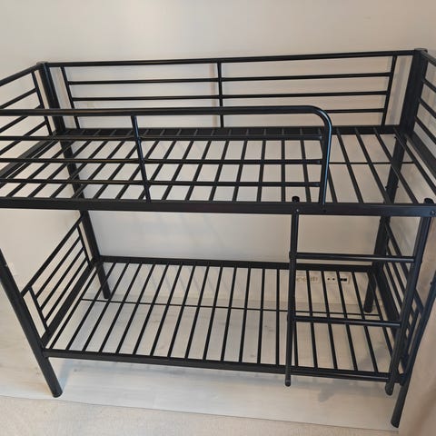 Myynnissä valkoinen puinen kerrossänky. Ei mahdu enää meille lastenhuoneeseen matalien kattojen vuoksi.