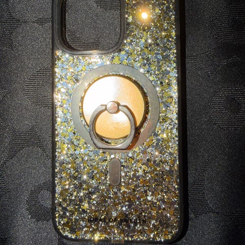 Ideal of Sweden -merkkinen iPhone 14 Pro Max -suojakuori. Uudenveroinen kunto. Kulta- ja hopeasävyinen glitterpinta. Napakasti istuva kuori, joka tuo näyttävyyttä puhelimeen.