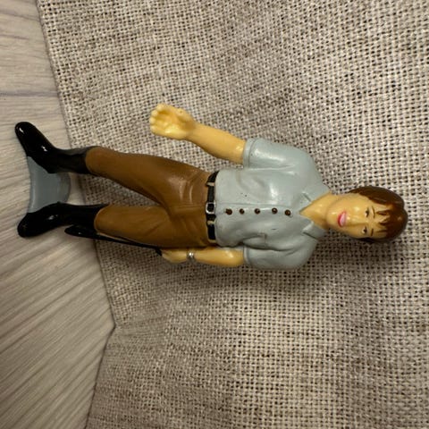 Schleich hevosten hoitaja / tallityöntekijä. Liikkuvat kädet. Oikein hyväkuntoinen leikeissä ollut, jotain minimaalista maalikulumaa/jälkeä pinnassa.