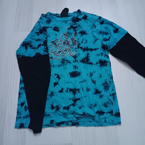 Pitkähihainen T-paita, tummansininen, koko 152 cm. Kangas on puuvilla-polyamidi, ei ole ohut. Sopii talveen.