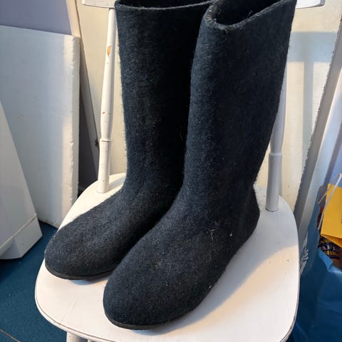 Miesten huopatossut noin 45 koossa. Kumipohjien reunat noussut hieman, liimaamalla saa tossut vielä pitkäksi aikaa.