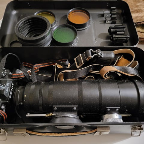 Asultaan lähes uudenveroinen peilitele. Mukana alkuperäinen kotelo, suodattimet ja tulpat. Lisäksi APS 2x telejatke. Muutama hiukkanen sisällä. Kuvat eivät ole huipputeräviä mutta hinta/laatu suhde on hyvä.