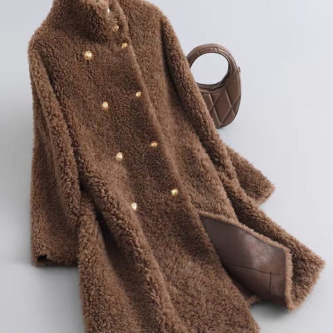 100% Aito Lampaannahka Turkistakki Uusi - Shearling Fur Coat NWT Ruskea (M KOKO)