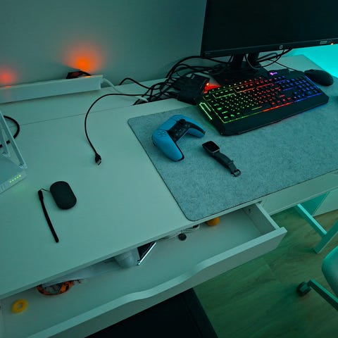 Kuvan mukainen lähes uusi työpöytä uusien sisustusratkaisujen tieltä. Pitkällä sivulla naarmu, jota ei juurikaan huomaa ellei tiedä (kuva). Otettu hinnassa huomioon. Purettu kahteen osaan, jossa pöytäosio ja jalkakehikko erillisinä. Pikainen nouto, viimeistään ke 14.1.26.