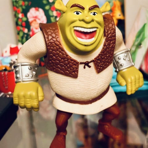 Hyvin säilytetty ja säilynyt Shrek-elokuvasta tuttu aasi, 35cm korkea, 40cm leveä. Tuliaisena Los Angelesin Universalin Studioilta vuodelta 2003. Saa myös tarjota.