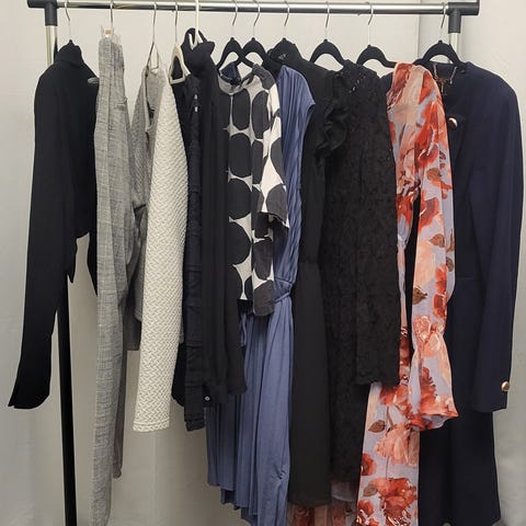 - Kerran pidetty Inspire kuvioitu mekko, koko 36. Kauluksessa solmittavat nauhat (nauhassa ommel purkautunut). Alla toppimainen alusmekko ja päällä läpikuultava sifonki.