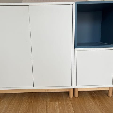 Ikean valkoiset kaapit, joissa molemmissa on sisällä yksi hylly. Yhteishinta 65 e. Voin myydä myös erikseen, tarjoa!