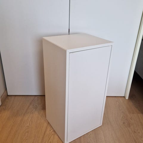 Isompi kaappi: https://www.ikea.com/fi/fi/p/eket-kaappi-2-ovea-hylly-valkoinen-20333951/#content