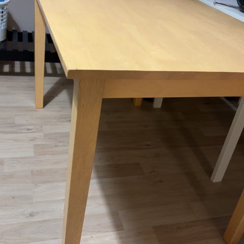 Myydään levitettävä ruokapöytä. Kuljetusta varten saa jalat pois. Elämää nähnyt, mutta vielä siisti pöytä. Muutossa lähtenyt pieni pala reunasta (kuva). Levityspala pöydän sisällä. Kätevä levittää esimerkiksi synttäreille.