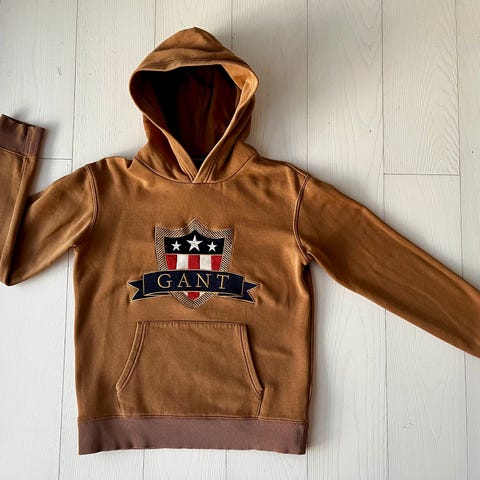 Myydään erittäin hyväkuntoinen Gantin collegehuppari, koko 13-14 y. eli 158/164 cm. Materiaali 78% puuvilla, 22% polyester. Gant-teksti ja logo ommeltu paitaan (ei painatus). Eläimetön talous ja pesty hajusteettomalla.