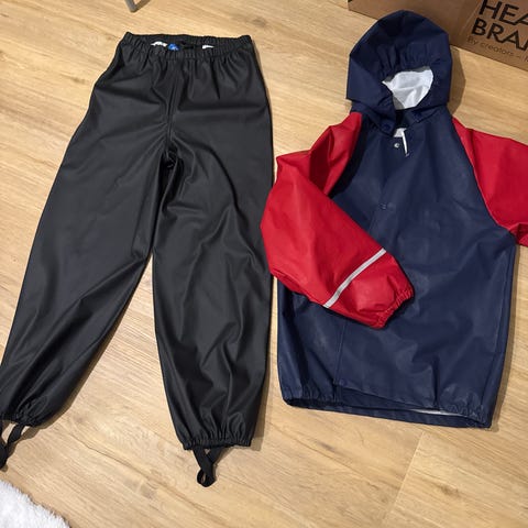 Pinkki/sininen sadetakki.