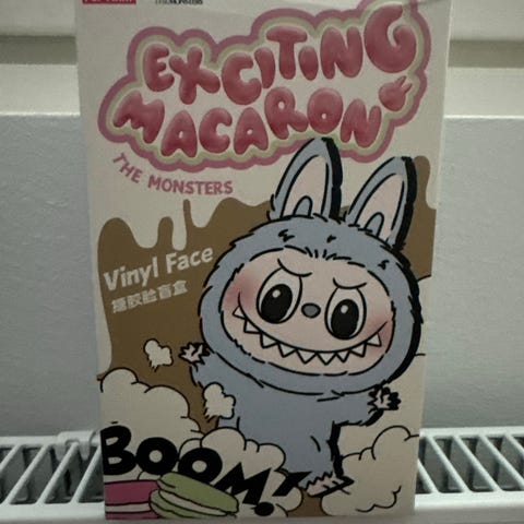 Aito Pop Martilta kesäkuussa ostettu Big into energy Labubu mallia Luck. Uusi mutta avattu pakkaus ja Labubu ollut näytillä kotona. Toisessa poskessa on pisama tms katso kuva.