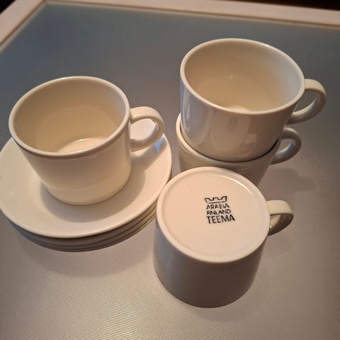 Myydään 5 kpl Teeman valkoisia kahvikuppeja ja 2 kpl motteja (0,3l).