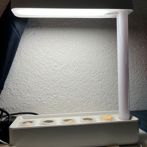 Myydään parin kuukauden ikäinen yrttivalo tilanpuutteen vuoksi. Mitat näkyvät kuvissa. Korkeuden puolesta tähän mahtuu joku muukin kasvi. Valaisimessa 16h ajastin. Lamput ledejä, joten virrankulutus on pieni.