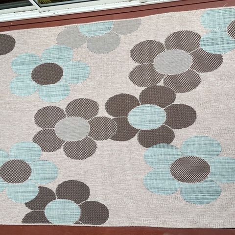 Upea kukkamatto - matalahko nukka tai onko sitten keskikorkea. Hyväkuntoinen, mutta pesusta hyötyisi - jätän sen ostajalle. Imuroin maton ennen myyntiä, mutta kiireisenä otin myyntikuvan pölyisestä matosta eli nukka on todellisuudessa siisti, kiinteä ja hyväkuntoinen.