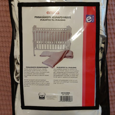 Valkoinen pinnasängyn reunapehmuste. Pehmoinen ja paksu 🤍 Pituus 350cm. Sopii 60x120cm kokoiseen pinnasänkyyn.