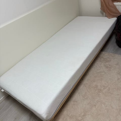 Toisen sängyn päädyssä säleikkö hajonnut, katso kuvat. Muutoin joitakin käytön jälkiä/naarmuja, käytetty sohvana.