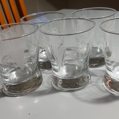 Kuvanmukaiset Pentikin käyttämättömät kuumajuomalasit. Vielä lahjapakkauksessaan, ei avattu.