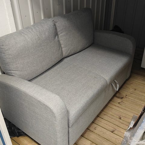 Vuode tulee esiin sohvan alta ja sillä on leveyttä 120 cm. Ritilän alla on säilytystilaa. Korkeus 40 cm on lattiasta istuin osaan.
