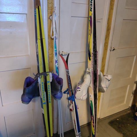 Peltosen sukset ja sauvat sekä Fisherin monot.