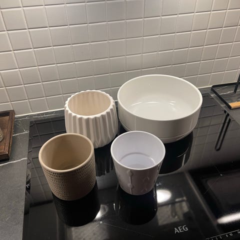 Myydään seinälle kiinnitettäviä savisia kukkaruukkuja, ruukkuihin voi laittaa kukan tai käyttää muuhun säilytystarkoitukseen, 10euroa/kpl